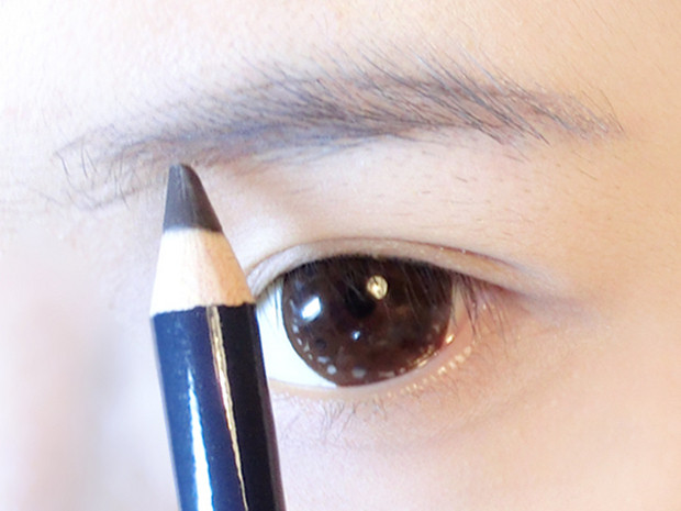 Kẻ lông mày bằng bút màu đen để các nét trên khuôn mặt rõ nét hơn.