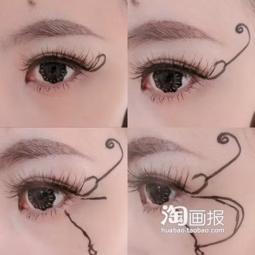 Cuối cùng, lấy bút kẻ viền mắt vẽ vài đường hoa văn đơn giản ở bầu mắt phía dưới.