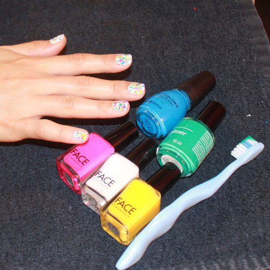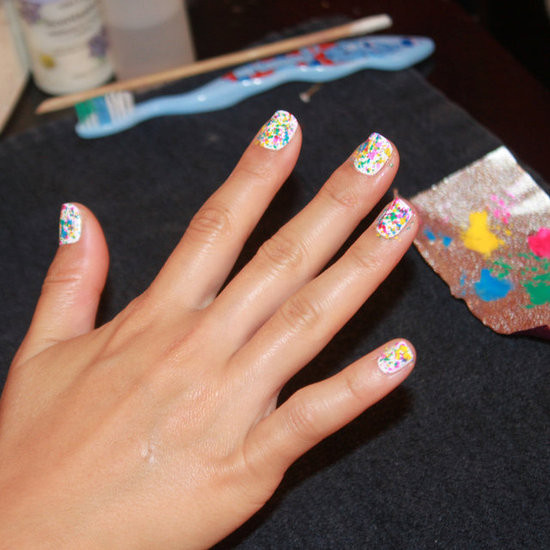 Kiểu móng này cực đơn giản nhưng lại có thể mang lại cho bạn một phong cách vô cùng nổi bật. Tất cả những gì bạn cần để tạo kiểu nail này chỉ là một chiếc bàn chải đánh răng và những lọ sơn màu nail bạn yêu thích. Tốt nhất nên sử dụng bàn chải cũ vì lông của nó mềm và dễ làm nhòe màu hơn.