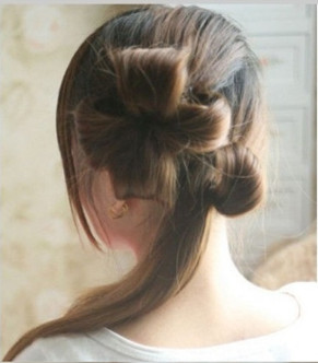 Kiểu búi tóc cách điệu hình một bông hoa sẽ mang lại cho bạn nét mới lạ xinh đẹp và rất cuốn hút...Muốn tạo một búi tóc đẹp trước tiên bạn hãy làm cho mái tóc mình có độ bông phồng cần thiết và chuẩn bị những vật dụng cần thiết như dây chun, kẹp tăm, nơ hoa.