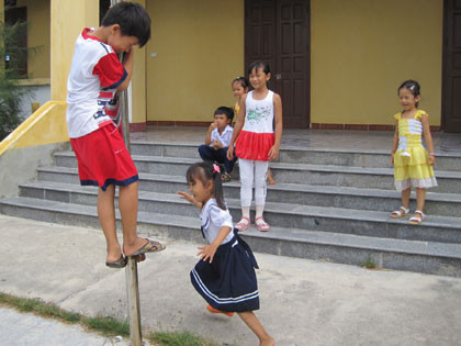 Các em học sinh trên đảo Trường Sa chơi trò chơi.