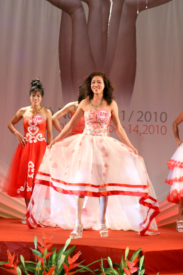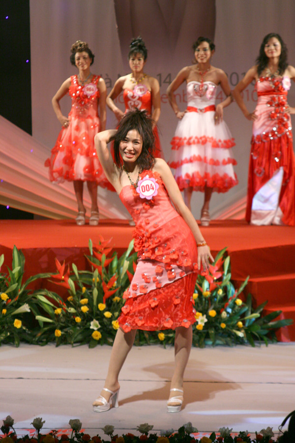 | Hoa hậu Thể thao 2007, Trần Thị Quỳnh (bên phải), thành viên Ban giám khảo trao giải cho thí sinh. |