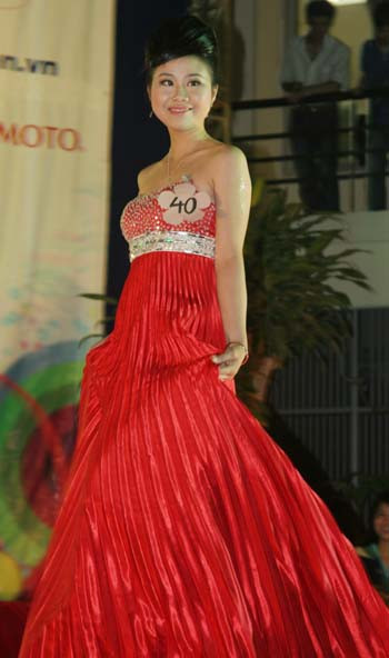 | các nữ thí sinh trong phần thi trang phục dạ hội. |