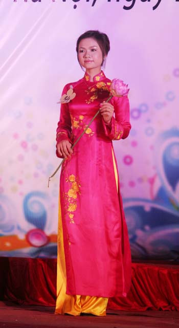 | Các thí sinh trong phần thi trang phục áo dài. |