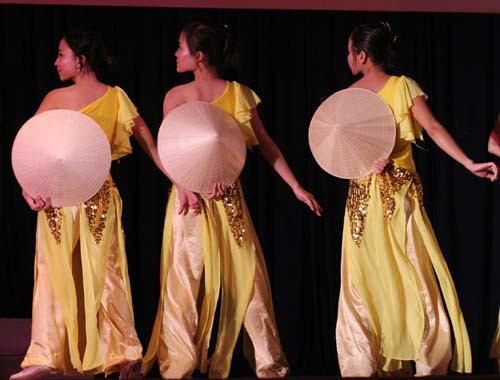 | mang điệu múa của các cô gái H'mông đến hội diễn. |