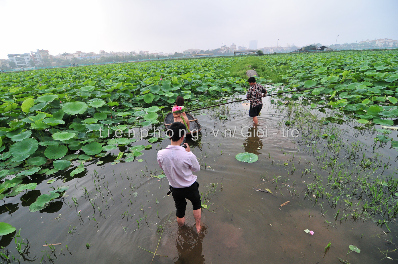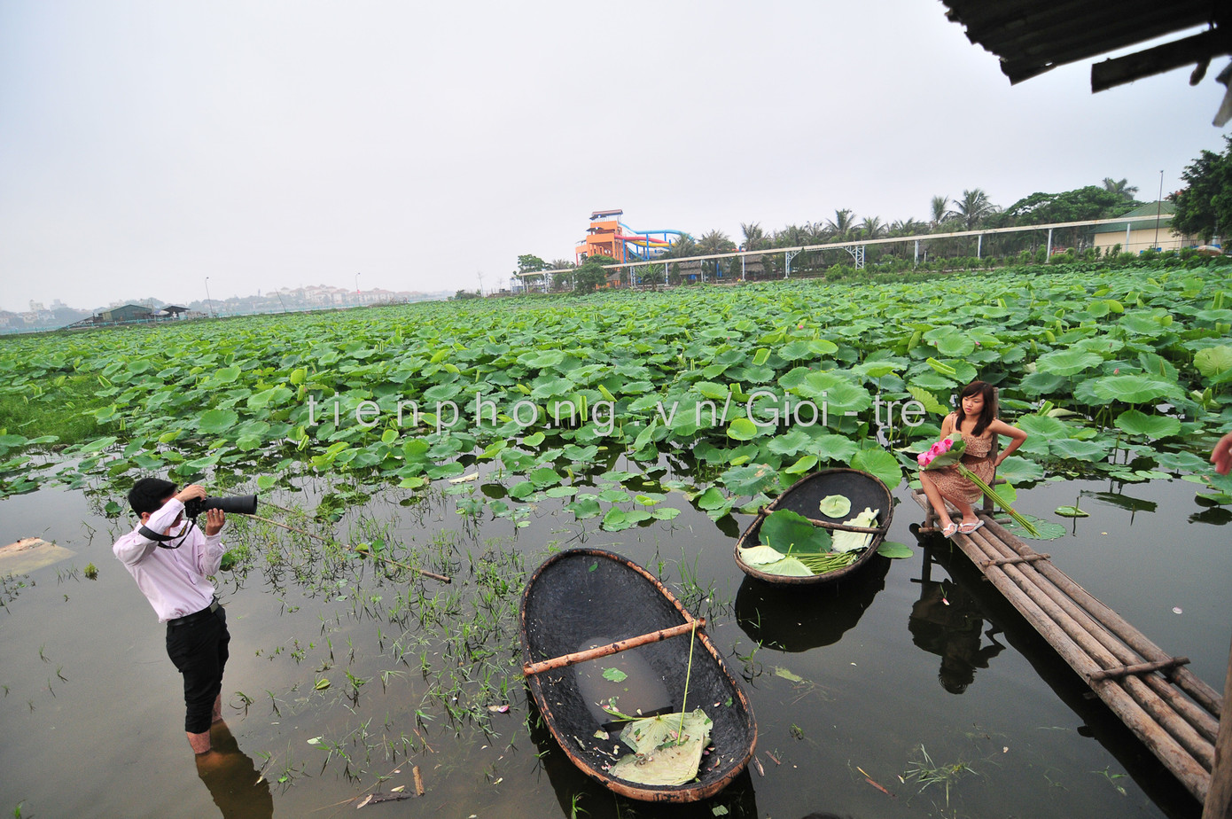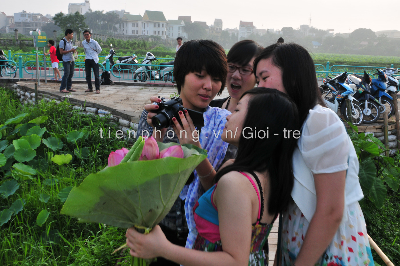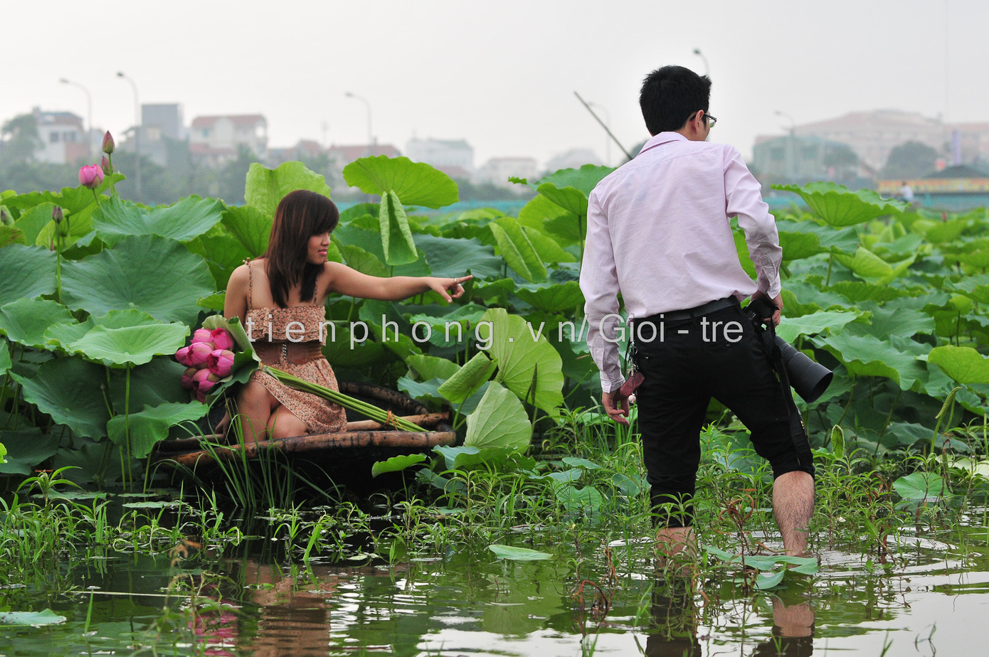 các bạn trẻ không ngại khó ra giữa hồ tạo dáng.