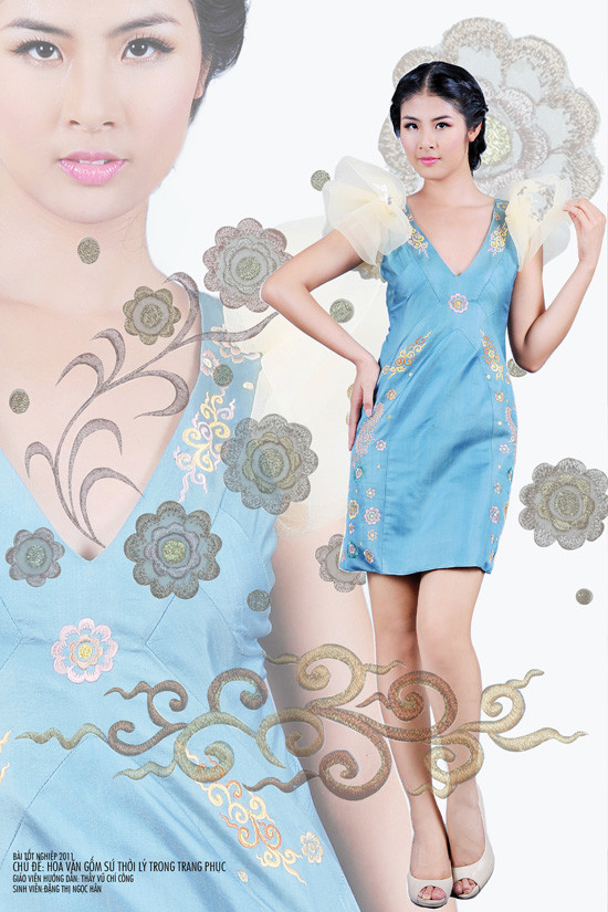 Bộ sưu tập của Ngọc Hân rất thành công trong việc đưa họa tiết hoa văn gốm sứ thời Lý vào trang phục