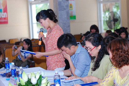 Các thầy cô trong hội đồng bảo vệ tốt nghiệp đang hỏi Ngọc Hân