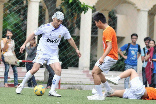 Chiều 22-6, sân vận động trường Y Dược TP. Hồ Chí Minh trở nên sôi nổi hơn khi có sự xuất hiện của Ưng Hoàng Phúc, Tuấn Hưng, nhóm The Men, Lương Bằng Quang trong trang phục thể thao của đội Real.