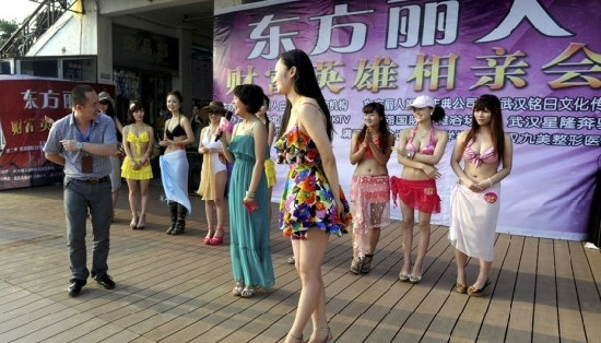 Cuộc thi tuyển gây xôn xao này được tổ chức tại bãi biển Hà Đông, tỉnh Vũ Hán, Trung Quốc. Nó là dịp để các đại gia vẫn còn cô đơn chọn cho mình cô bạn gái theo ý muốn.