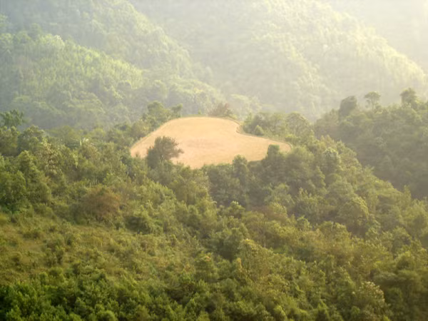 | Canh tác trên đỉnh núi. |