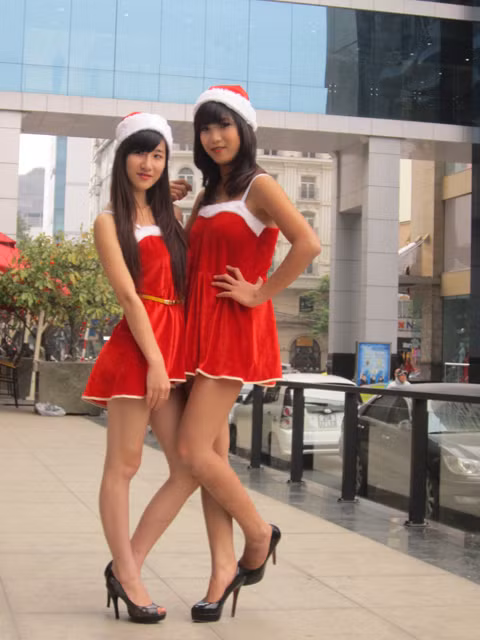 Trong sắc đỏ ấm áp của trang phục bà già Noel, các bạn nữ đã cùng nhau thể hiện nét hấp dẫn, tươi trẻ; thể hiện sự nhí nhảnh của tuổi đôi mươi…
