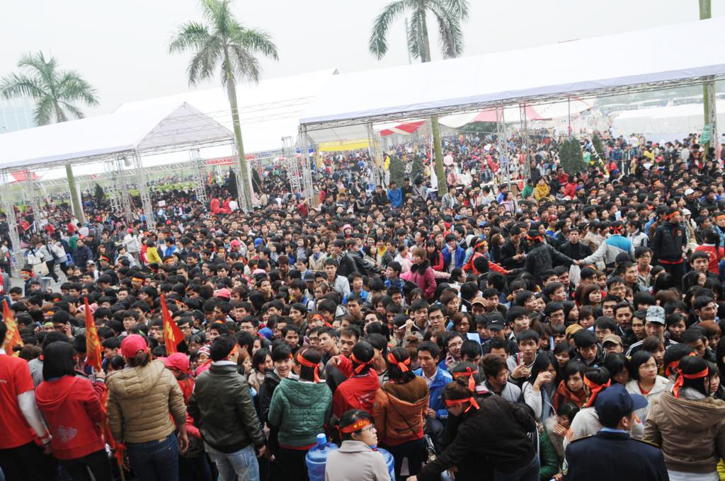 | Biển người đông nghịt khiến các tình nguyện viên phải căng sức để giữ trật tự. |