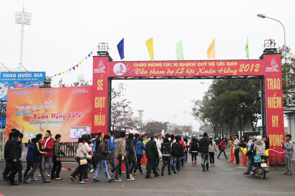 Tính đến thời điểm 18h ngày 12-2, lễ hội Xuân Hồng 2012 được tổ chức tại sân vận động quốc gia Mỹ Đình đã thu hút sự tham gia của 22.500 người. Trong đó, số lượng người đăng ký hiến máu là 9.800 người; Số lượng máu tiếp nhận được tính đến thời điểm 18h là 6.100 đơn vị máu. Dự kiến sẽ tiếp nhận đến khi kết thúc lễ hội sẽ đạt khoảng 6.800 đơn vị máu.