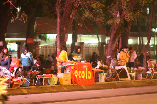 Ngay từ đêm 13-2, nhiều bạn đã bày bán. Nhóm bạn Nga, Nhung (Đại học Công Đoàn) như nhiều bạn khác bày bán gần trường Đại học Thủy Lợi. Nhung cho biết, hoa được lấy từ dưới Hà Đông, về gói bọc rồi nhóm chia nhau đứng ở nhiều điểm để bán. Giá hoa tươi có phần nhẹ nhàng hơn. 12.000 đồng/bông; lẵng hoa có nhiều loại khác nhau, trung bình dao động từ 120.000 – 20.000 đồng.