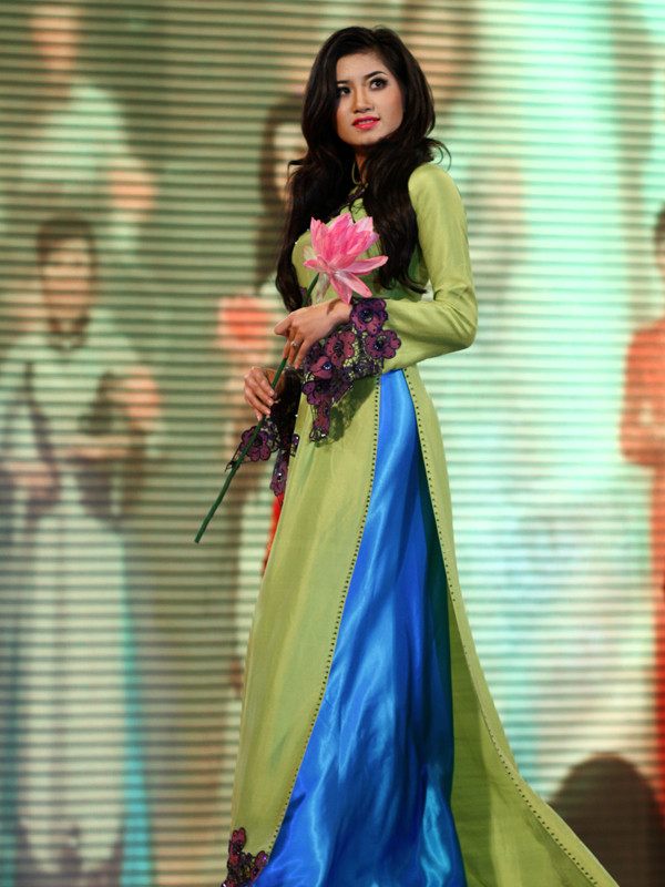 Các thí sinh đã để lại những màn trình diễn ấn tượng cho khán giả trong đêm Chung kết Nữ sinh thanh lịch – True Baeuty 2012 Đại học Thăng Long (Hà Nội). 16 thí sinh chia thành những tốp khác nhau. Mỗi tốp lại thể hiện nét riêng. Chẳng hạn, tốp thí sinh kết hợp áo dài với cây sáo trúc, hay chiếc đèn lồng…