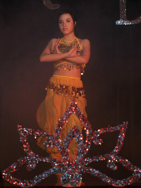 Khuôn mặt trang điểm vừa đủ đậm làm nổi bật đôi mắt và điểm dấu đỏ trên trán. Trang phục biểu diễn vừa đủ độ kín đáo tôn thêm đường nét duyên dáng của cơ thể; kèm thêm tiếng xủng xẻng của những đồng tiền càng thu hút sự chú ý của khán giả. Cùng với động tác vũ đạo và tiếng nhạc, các thí sinh thực sự đưa khán giả đến với thế giới văn hóa của đất nước Ấn Độ.