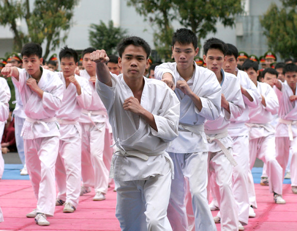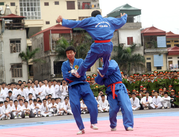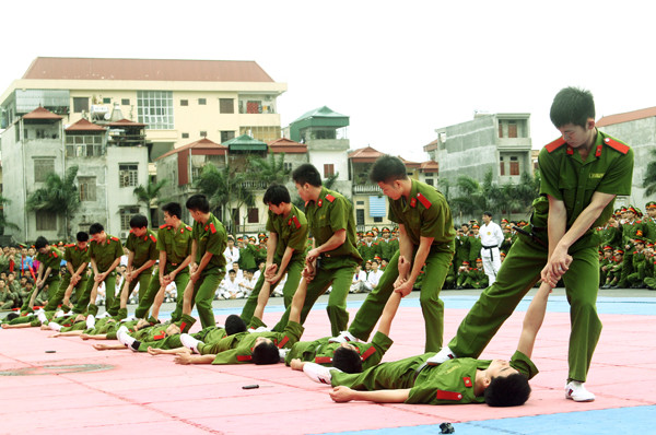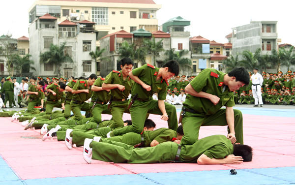 Đó là màn trình diễn của các học viên Học viện Cảnh sát Nhân dân trong chương trình Hội thao biểu diễn võ thuật diễn ra ngày 23-3, tại trường Học viện Cảnh sát Nhân dân (Cổ Nhuế, Hà Nội).