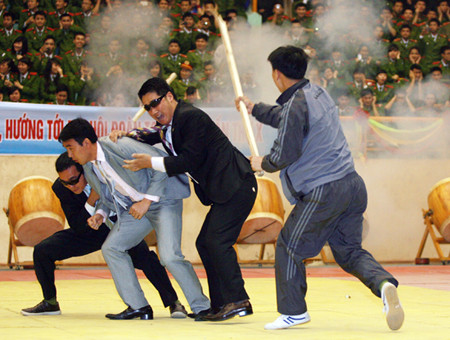 Ngoài biểu diễn những bài võ tổng hợp, các chiến sĩ công an thực hiện những tiết mục, động tác võ thuật đặc sắc trong tình huống chiến thuật giả định bảo vệ lãnh tụ, giải cứu con tin, đánh bắt tội phạm, bảo vệ tài sản nhà nước; cũng như tranh tài ở các nội dung thi đấu đối kháng.