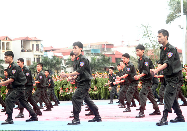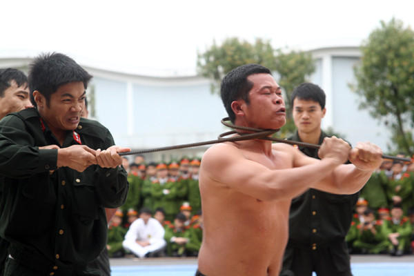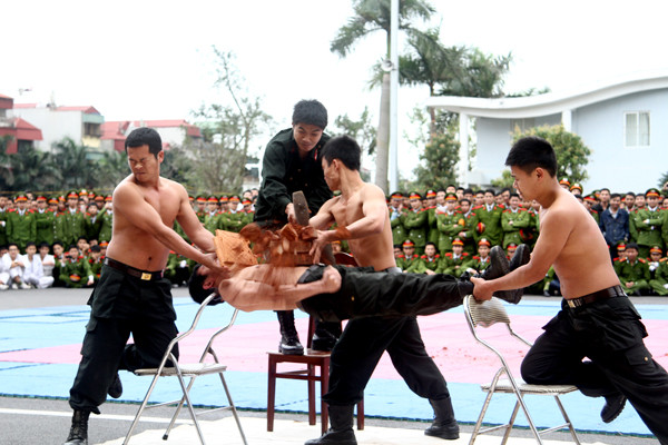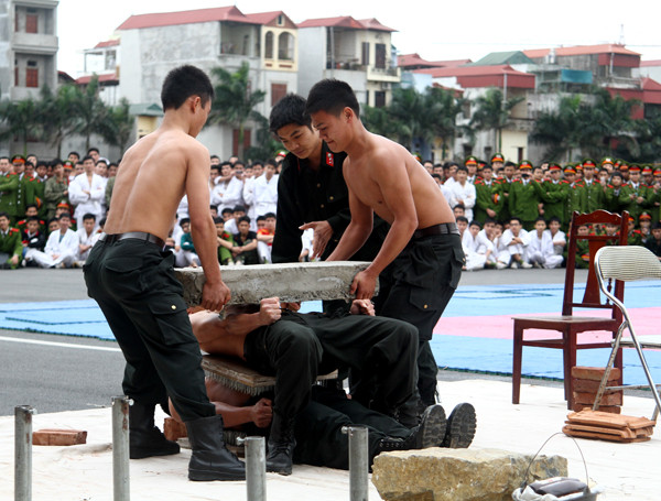 Đây là màn trình diễn của các chiến sĩ trẻ trong đợt hội thao biểu diễn võ thuật của trường Học viện Cảnh sát nhân dân những ngày cuối tháng 3 - 2012.