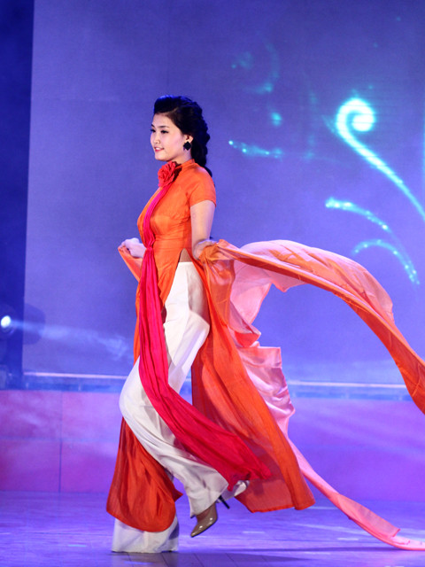 Phù hợp với đường nét thiết kế của trang phục, được cộng hưởng âm thanh, những người mẫu ét-vê thể hiện nét cuốn hút ở từng phong cách. Đó là sự duyên dáng, một chút sâu lắng với tà áo dài đậm nét truyền thống và trên nền nhạc du dương. Đó là sự rạng rỡ, trẻ trung trong trang phục áo dài được cách điệu mang hơi hướng của dạ hội; trên nền nhạc rộn ràng.