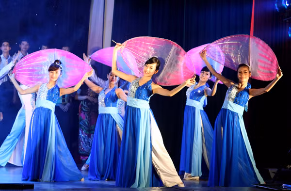 Đêm văn nghệ diễn ra với nhiều tiết mục thể hiện sự mượt mà trong từng điệu múa câu hát. Như múa đàn dưới ánh trăng, hay những động tác thể hiện cánh sen nở… Nhất là tiết mục trình diễn áo dài của các nữ sinh.