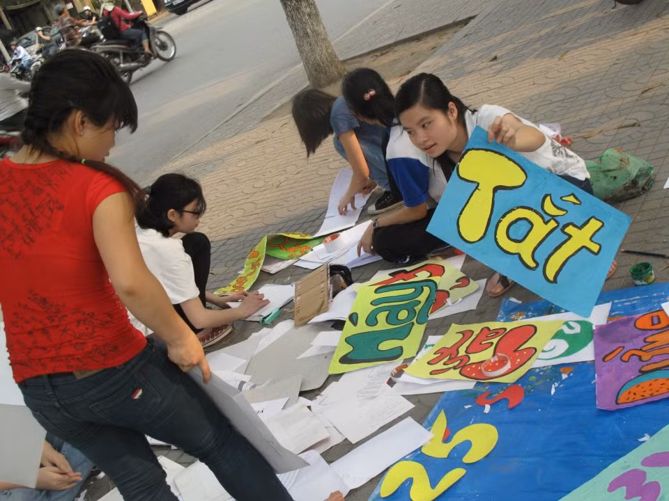 “Dự án Green Pause về cơ bản không cần nguồn kinh phí lớn. Banner tuyên truyền được tái chế từ banner cũ, giấy, bìa". Trần Ngọc Anh, trưởng ban tổ chức của 350 Việt Nam.