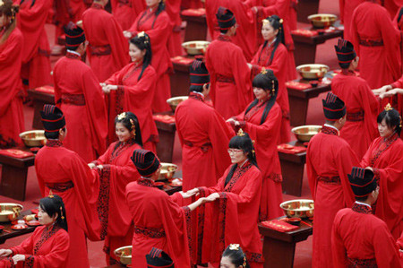 Vào đúng ngày 1-5-2012, 130 đôi vợ chồng trẻ tại thành phố Tây An (Thiểm Tây, Trung Quốc) đã cùng tham gia đám cưới tập thể. Điều đáng nói, đám cưới đình đám này được thực hiện hoàn toàn theo cách thức có từ cách đây khoảng …1.000 năm.