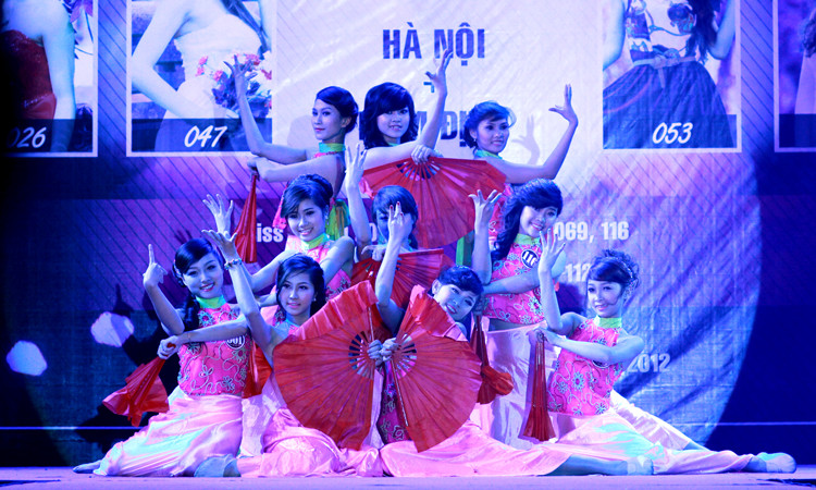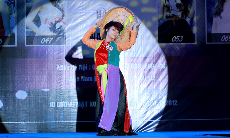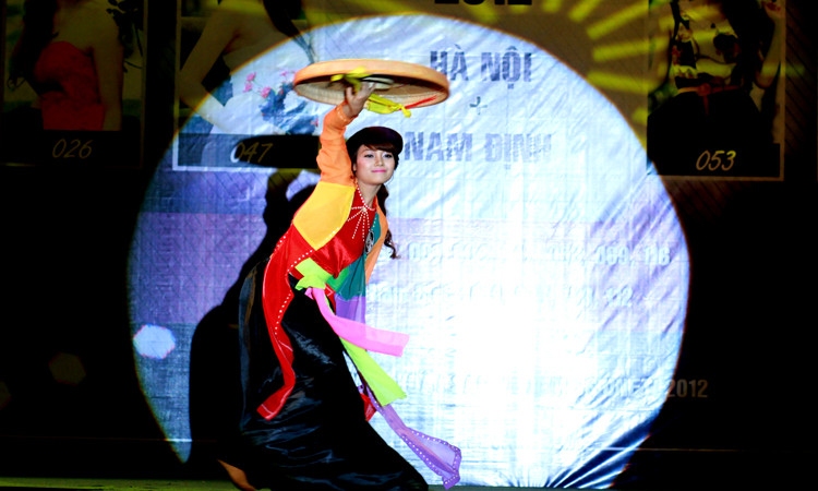 | múa "Duyên dáng Việt Nam" lại mang tới hình ảnh áo mớ ba mớ bảy, nón ba quai thao, khăn vấn đầu.... |