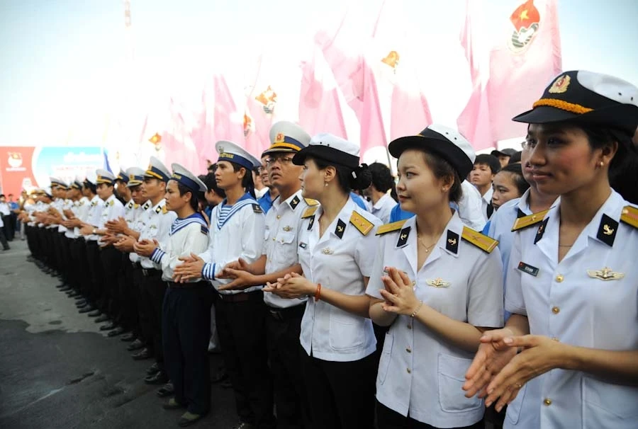 | Cán bộ chiễn sĩ Lữ đoàn 125 và đoàn viên thanh niên Thành đoàn TP HCM tiễn đoàn Hành trình. |