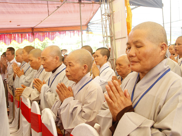 | Các vị chư tăng làm lễ cầu siêu cho anh linh những anh hùng liệt sĩ và đồng bào tử nạn năm 1945. |