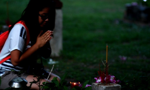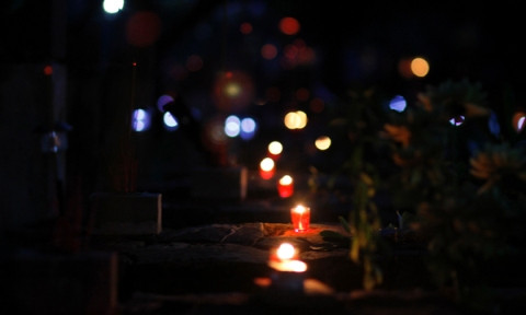 | Nghĩa trang Hàng Dương lung linh trong ánh nến. |