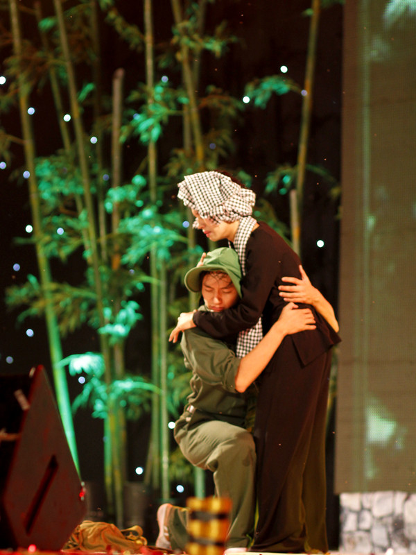 Cùng với các nghệ sĩ, các bạn trẻ tái hiện lại hình tượng người nữ anh hùng Võ Thị Sáu kiên trung, bất khuất.