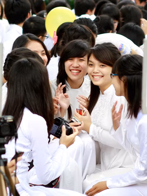TPO – Trong sắc áo trắng đồng phục và nụ cười trên môi, những nữ sinh trường THPT Chu Văn An (Hà Nội) trở nên rạng rỡ trong sáng tựu trường đầu tiên của năm học mới.