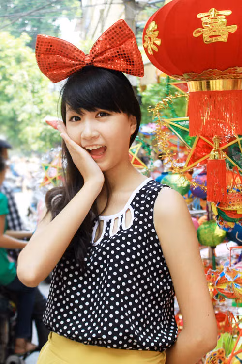 Ngắm thiếu nữ Hà Nội xinh đẹp đón Trung thu về trên phố Hàng Mã:
