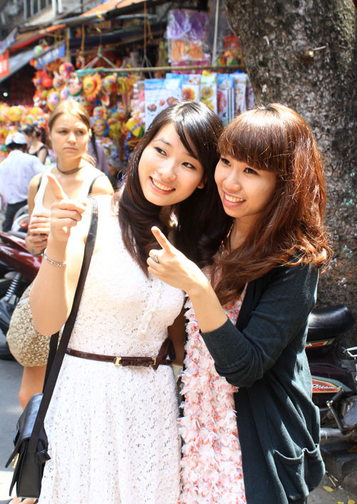 | Trên phố Hàng Mã dịp cuối tuần qua, có thể bắt gặp rất nhiều bạn gái xinh xắn rảo bước với nụ cười tươi tắn trên môi. |