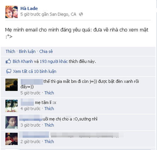 Cô nàng hot girl đình đám của Hà thành đã chính thức công khai người yêu khi chuyển từ trạng thái độc thân sang đang hẹn hò trên facebook cá nhân của mình. Cùng với đó là những lời yêu thương tràn ngập niềm hạnh phúc, nhớ nhung của Hà Lade dành cho Ứng Duy Kiên – nửa kia của cô bạn.