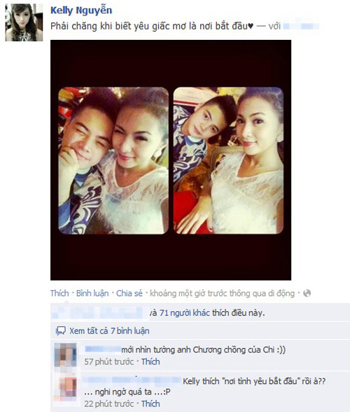 Trước nhiều lời đồn thổi Kelly công khai người yêu mới để “trả đũa” người yêu cũ Ngô Kiến Huy, Kelly khẳng định bạn ấy không muốn nhắc lại chuyện đã qua, từ khi có người yêu mới, cuộc sống của Kelly luôn vui vẻ vì vốn dĩ Bi là người chín chắn, trưởng thành, luôn làm chỗ dựa cho Kelly trong cuộc sống.