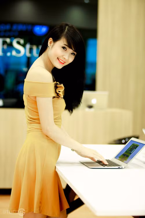 | Duyên dáng trong chiếc váy vàng. |