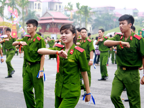 TPO – Vẫn diện trên mình sắc xanh quen thuộc của bộ cảnh phục, đông đảo học viên Học viện cảnh sát nhân dân đã cùng trình diễn những vũ điệu dân vũ thú vị trên nền nhạc sôi động.