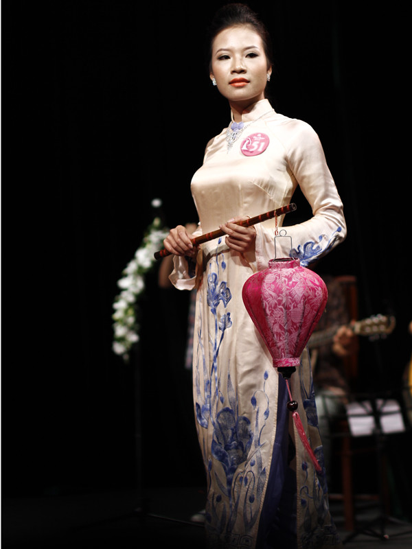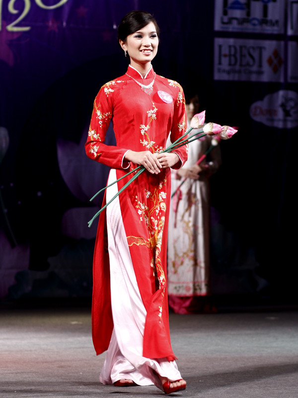 | Khoe nét thướt tha với tà áo dài dân tộc. |