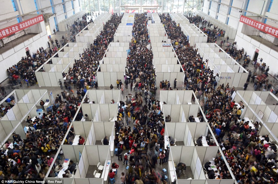 Hội chợ việc làm diễn ra tại tỉnh Trùng Khánh, Trung Quốc vào ngày 28 - 11 với sự tham gia của hàng trăm công ty. Theo báo cáo, khoảng 150 công ty tham dự hội chợ, tìm kiếm 9.000 vị trí công việc khác nhau.