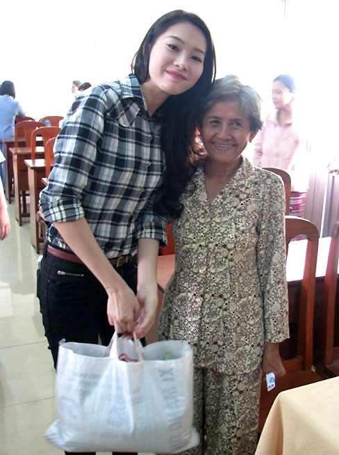 Cùng với đoàn từ thiện, hoa hậu Đặng Thu Thảo đã trao 100 phần quà, mỗi phần trị giá 500.000 đồng (gồm 300.000 đồng tiền mặt và 20kg gạo) để bà con nghèo Cần Thơ ăn Tết.