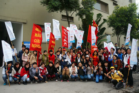 Trương Huy Hoàng (Sinh viên ĐH Công nghệ- ĐH Quốc gia Hà Nội) đội trưởng đội cổ động diễu hành xuất phát từ ĐH Quốc gia HN cho biết, số lần đi diễu hành cổ động cho các chương trình hiến máu nhân đạo lớn như Chủ nhật đỏ nhiều “kể không hết”.