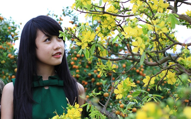 Thiếu nữ khoe sắc cùng hoa Xuân