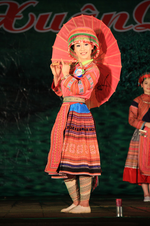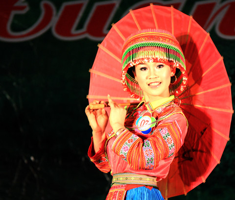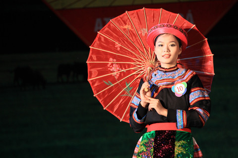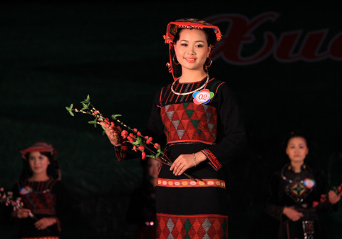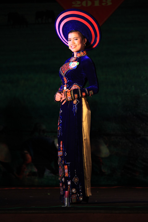 | Nguyễn Thị Huyền Trang – người đoạt giải nhất cuộc thi Người đẹp biểu diễn trang phục dân tộc. |