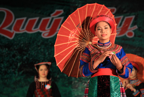TPO – Trong khuôn khổ lễ hội Lồng Tồng (ATK Định Hóa, Thái Nguyên), tối 18 – 2, diễn ra cuộc thi Người đẹp biểu diễn trang phục dân tộc.