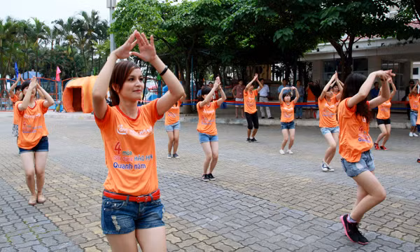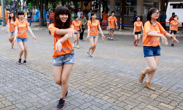 TPO – Cùng với màn nhảy dân vũ “Trống cơm”, đông đảo bạn trẻ đã cùng thể hiện màn nhảy flash mod đầy sôi động dưới bể bơi với những động tác té nước…