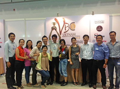 | Hồ Quốc Tuấn của Highlands Coffee đứng giữa. |