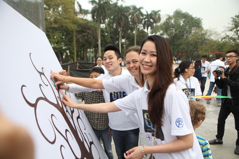 Hơn 300 tình nguyện viên chụp ảnh cùng Đại sứ Dương Thuỳ Linh trước khi khởi hành.